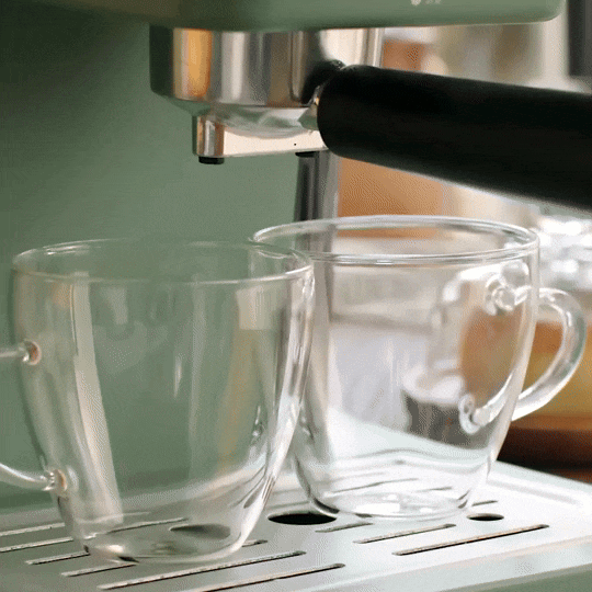This espresso machine is a delight for home use, with its mint green color seamlessly matching other green decor in my kitchen. Its aesthetic and style complement our mint barrel front Keurig brewer beautifully.