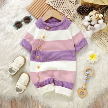 Cozy Knit Baby Romper. Thoughtfully designed for newborns and toddlers, this charming one-piece outfit is perfect for chilly days, cuddles, and photo-ready moments. With its timeless striped pattern, foot wrap design, and soft knit finish, your little bundle of joy will look stylish while staying snug. Whether you’re heading out for a stroll or having a relaxed day indoors, this romper is a go-to favorite for every season—especially ideal for autumn warmth.