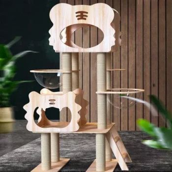 Transform your home into a feline paradise with our Deluxe Wood Cat Tree & Castle, featuring an enchanting Rainbow Bridge and a robust jumping platform. Designed for the adventurous spirit of your cat, this oversized solid wood construction promises endless fun, comfort, and exercise. Crafted from high-quality wood in Guangdong, this exquisite piece is not just a cat tree; it’s a statement of luxury and playfulness for your beloved pet.