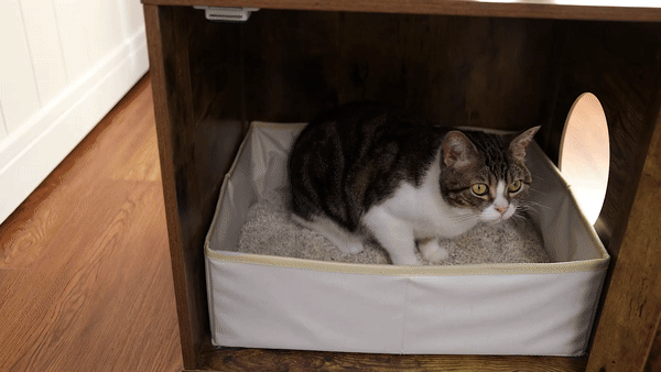 It's absolutely adorable!! Seriously, finding a cat tree that doesn't make me cringe has been a mission, but this one's a showstopper. My cats are obsessed with the top part, and you can even swap it out. Clearly, a cat person thought this up, and I'm all for it 😍 So happy with my buy! The built-in spot for the litter box is genius. Heads up though: a standard litter box won't fit, you've gotta use the kinda flimsy one it comes with. I threw in a wooden panel at the bottom for extra support and lined it with kitty litter liners - works like a charm.