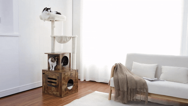 Love this cat tree! It's adorable, a cinch to put together, and even includes a foldable litter box down below. It's clear a lot of thought went into its design, offering the perfect hangout for both my fur babies. They took to the new litter box setup right away, which is a big deal because switching their litter box has always been a struggle. The side doors make cleaning it super easy, and the extra scratcher that sticks to the side is a nice touch.