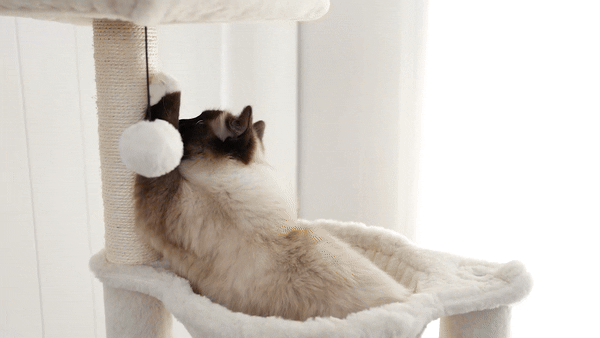 My bed's pretty high, nearly 5 feet off the ground, and he's turned the tree into his personal launchpad to my bed. It's super sturdy. He's really taken to the hammock, especially when I'm not around to snuggle with. The spot meant for the litter box is a bit cramped, so it's become more of a chill zone for him and a stash for his canned treats instead!