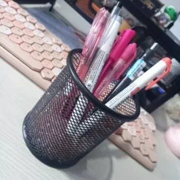 This pencil holder is more than just a container; it’s an essential tool for maintaining an organized desk. Its sturdy metal construction ensures that it can withstand daily use without losing its shape or style. The mesh design not only adds a touch of modernity but also provides a glimpse of your stationery, making it easy to find what you need at a glance.