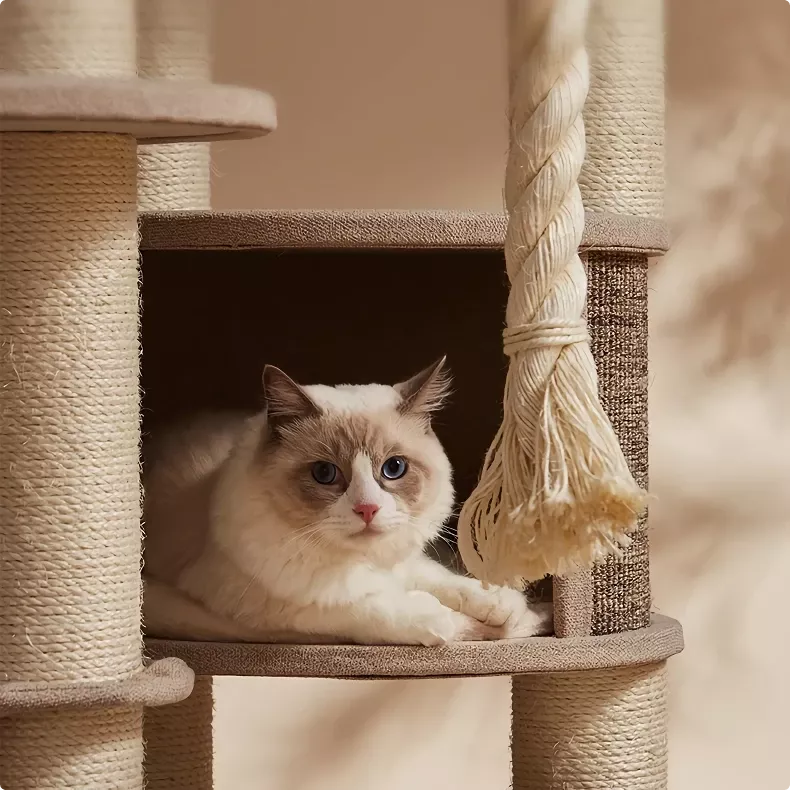 Discovering this cat tower has been a game-changer for our household. The multi-level design provides endless entertainment for my feline friend, and the natural wood material adds a touch of class to our decor. Assembling it was a breeze, and watching my cat's joy has been the best part. A must-have for cat lovers!