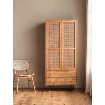 Introducing our latest addition to sophisticated home essentials – the Luxurious Rattan Double Door Wardrobe. Crafted with a keen eye for detail, this wardrobe combines the natural elegance of rattan with the sturdiness of solid wood. Its modern, yet timeless design brings a touch of Southeast Asian artistry to your space, making it more than just a storage solution, but a piece of art.