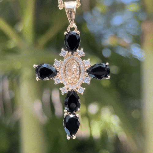 Elevate your style with the stunning Luxury Rhinestone Virgin Mary Cross Pendant Necklace, a masterpiece of craftsmanship and elegance. This exquisite necklace features a beautiful depiction of the Virgin Mary set within a cross, adorned with sparkling rhinestones that catch the light with every movement. Perfect for both women and men, this piece is designed to make a statement while showcasing your faith in a luxurious way.