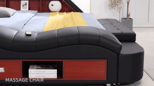 Luxury Smart King Bed with Massage Recliner, Bluetooth Speakers, Storage & USB Ports