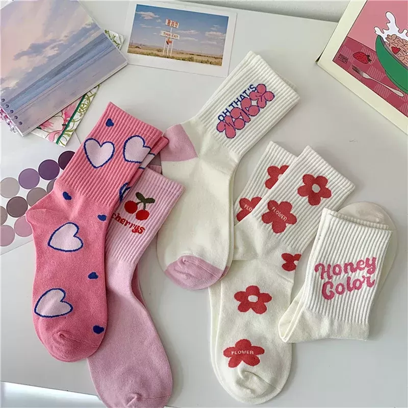 Our Pink Flower Cotton Mid-Tube Socks are perfect for any occasion. Wear them with your favorite sneakers for a sporty look, pair them with sandals for a quirky, stylish outfit, or simply slip them on at home for cozy comfort. Suitable for all seasons, these socks will become your year-round favorite.