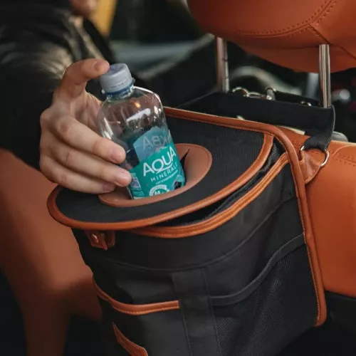 This car trash can has a double bottom – the inner lining is easily detachable and completely waterproof to prevent any leaks. To wash it, just unfasten the Velcro, use a damp cloth, and reinstall.
