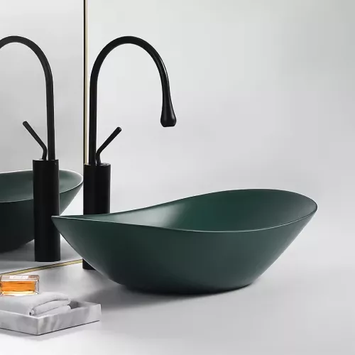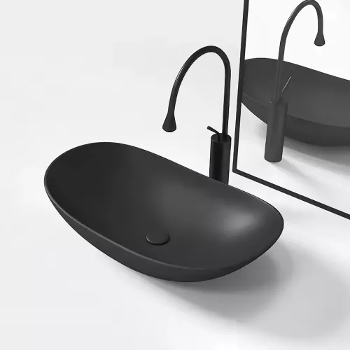 Our ceramic wash basin not only serves its practical purpose but also adds a statement piece to your bathroom decor. The sleek black basin with a modern oval shape exudes elegance and style, making it a focal point of your space.