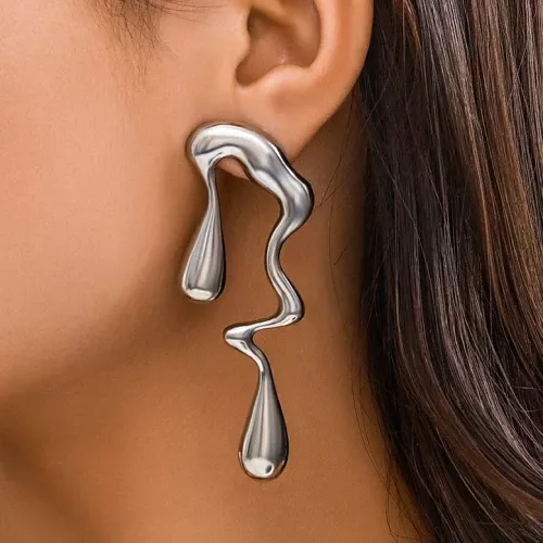 What sets these earrings apart is their unique blend of traditional elegance and contemporary design. The irregular water drop shape paired with the geometric pattern creates a striking balance, offering a fresh twist on classic stud earrings. These earrings are not just jewelry; they are a fashion statement that reflects your unique taste and style.